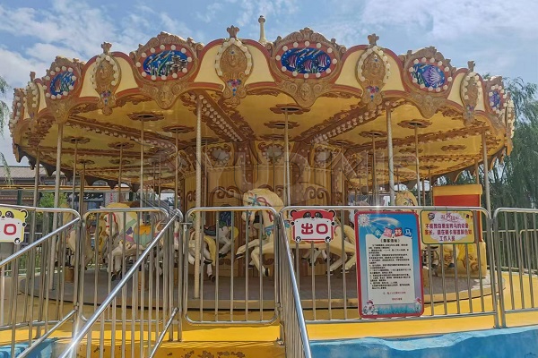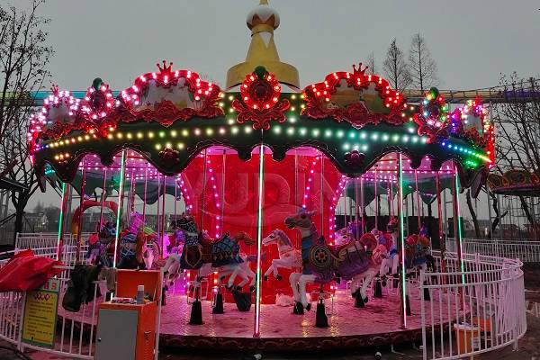The 24-seat Dinis vintage merry go round ride is a favorite among many of our clients, offering ample seating while still being manageable in terms of space and maintenance. This size is versatile, suitable for diverse environments ranging from amusement parks to community fairs. It provides a festive ambiance and can accommodate both children and adults, making it a popular choice for family-oriented venues.